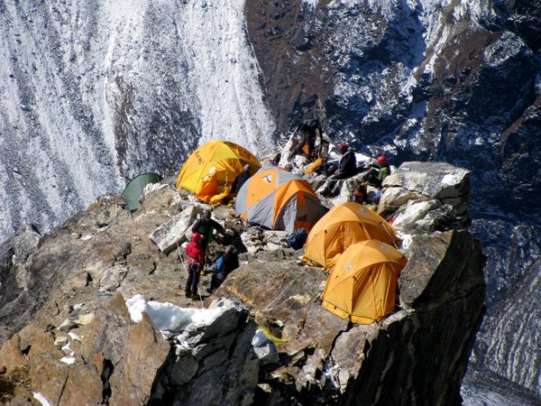 När vi når Camp 1 på 5 700 meter har du lämnat vandringen bakom dig. Här finns bara berg, höjd och fokus. Lägret är litet, utsatt och dramatiskt placerat. Bara några få tält får plats.