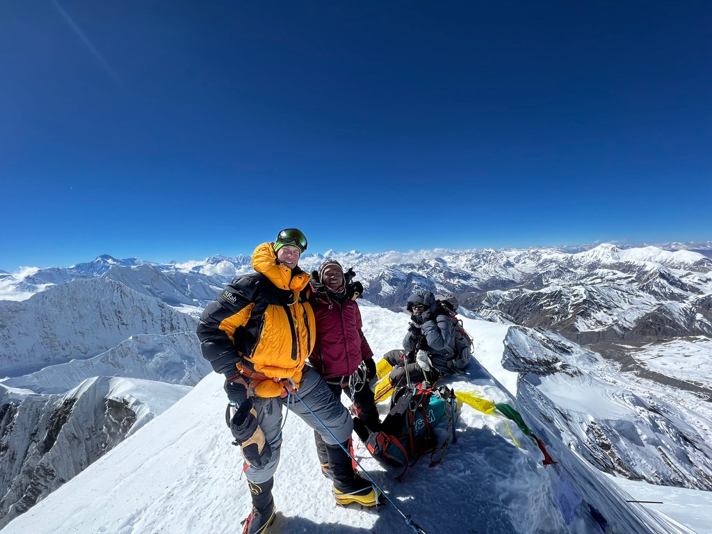 Utsikten från toppen är magnifik — hela Annapurna-massivets pärlband och Tibets platå breder ut sig framför dina fötter på 7126 meters höjd.