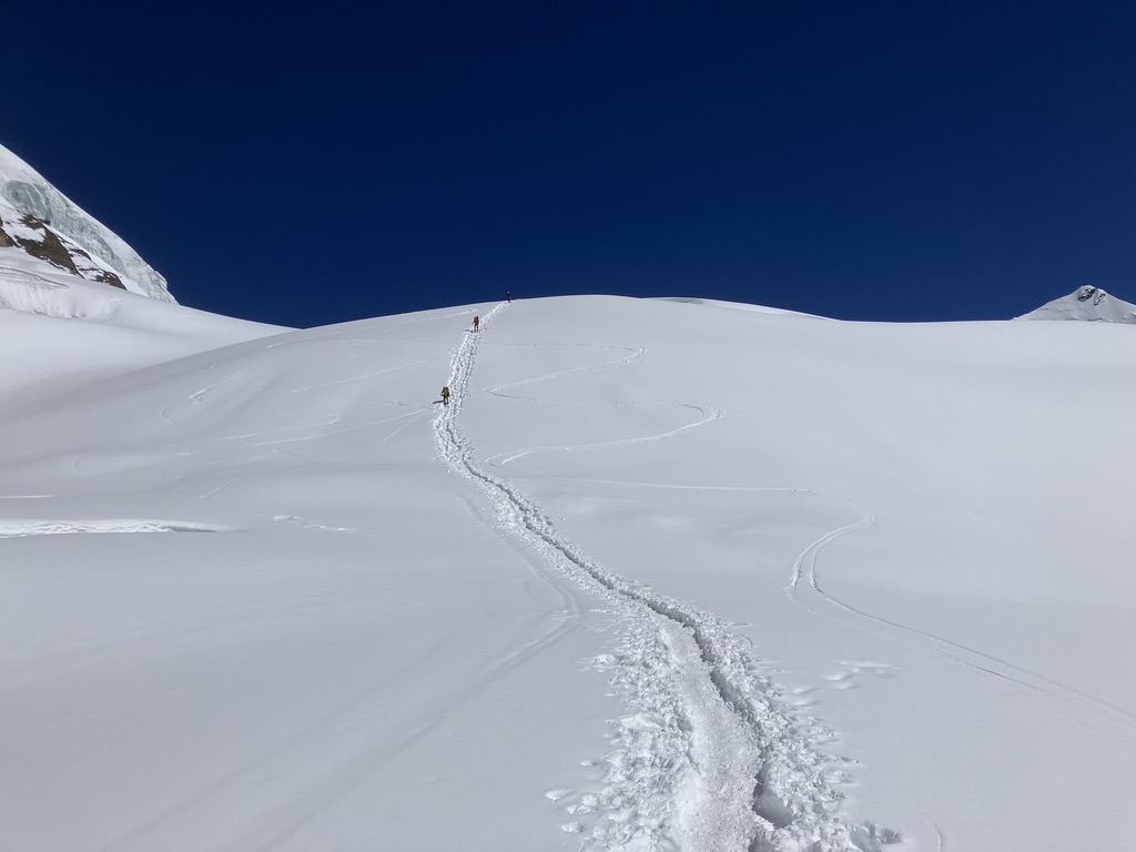 - Läger 2 (C2) — Ytterligare ett brantare parti passeras