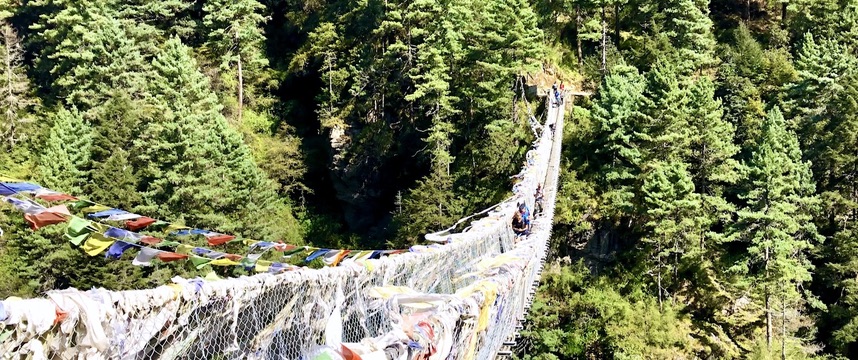 Våren i Himalaya är en fest för ögat. Dalarna exploderar i knallrött, rosa och vitt när enorma rhododendronskogar blommar längs vandringsstigen – ett skådespel som är svårt att sätta ord på. Dagarna är varma, förmiddagarna ofta solklara och kristallklara.