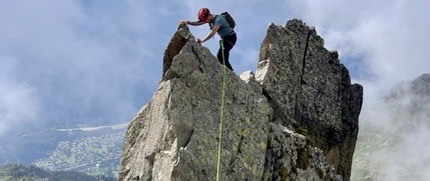 Vi börjar vid Col de l'Entrèves och korsar den vassa och exponerade kammen – en klättring som kombinerar teknisk klippa, djärvt åkande och exceptionell utsikt rakt mot Mont Blanc. Aiguille d'Entrèves kallas ofta för "den italienska Cosmiques-arêten" och är ett perfekt sätt att avsluta en vecka av progressiv alpin klättring.